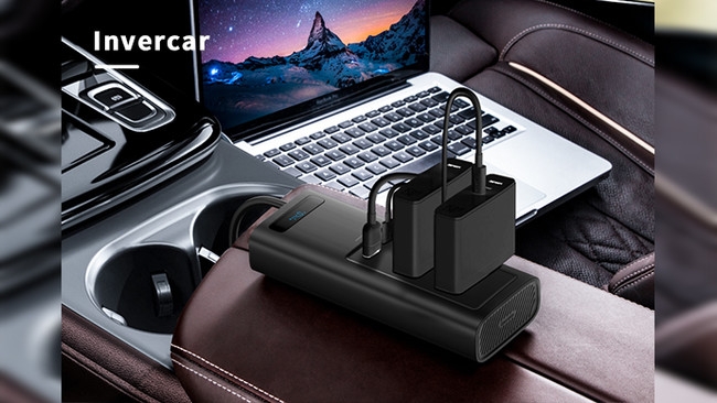 車で最大150W急速給電!後部座席の充電も楽々!車が動いている限り、電源がなくなる心配無し!超軽量&コンパクトなインバーター「Invercar(インバーカー)」が日本に上陸!!