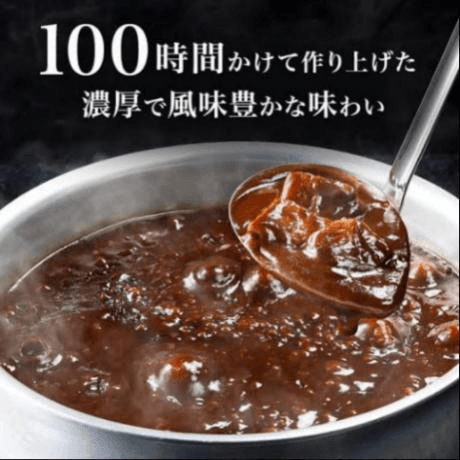 100時間カレーのスパイシービーフカレーをベースに厳選されたほろほろの牛角煮肉と玉ねぎを追加し旨味、コク、甘み、辛みが見事に融合した「スパイスとコクには秘密がある」最高の逸品を是非この機会にお召し上がりください!