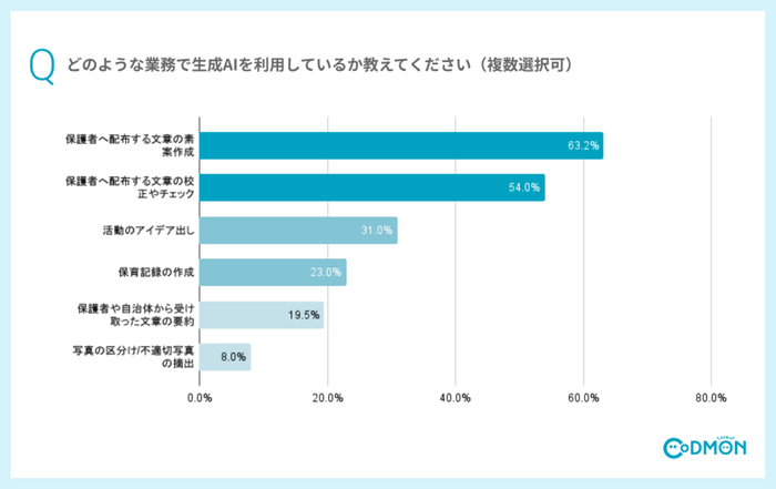 株式会社コドモンは、保育・教育施設向けICTサービス「CoDMON」をご利用の保育施設を対象に、「生成AIの利用」に関するアンケートを実施いたしましたので、結果をお知らせいたします。