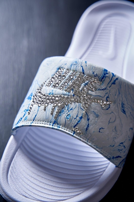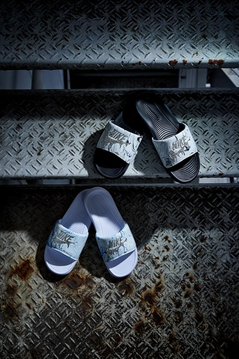 水面に塗料を浮かべて水圧転写をする技法「ハイドロディップ」を使用し、slave of fashionの象徴でもあるマーブル模様を演出。