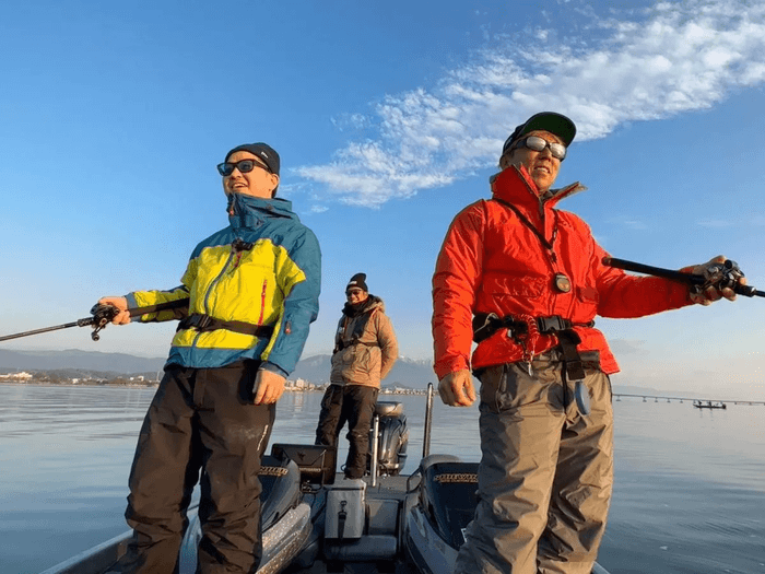コラボカバースキャットを使用して、デプス・奧村 和正社長と天下一品・木村 一仁社長が琵琶湖(滋賀県)にてバス釣りを実践!