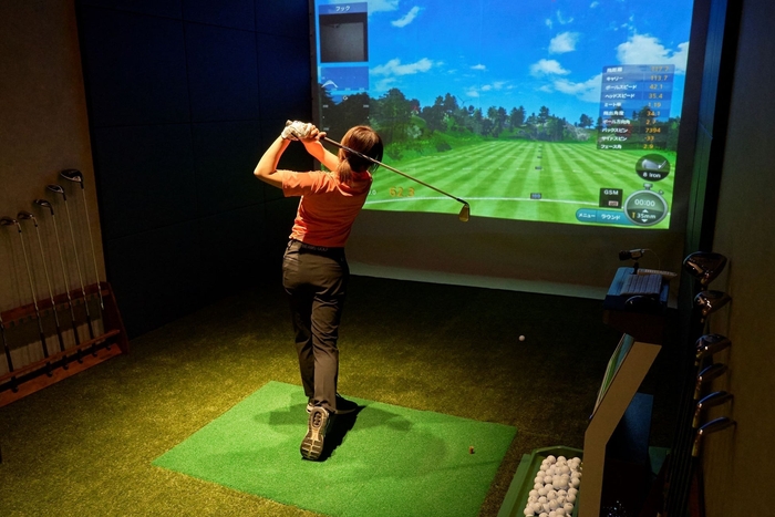 広々とした個室。プランによって非会員の同伴1名~3名無料なので、相模原店ではお二人でラウンドを楽しむ方が数多く見られます。24時間無人運営施設なのでいつでもご自身のタイミングでプレイをすることができます。