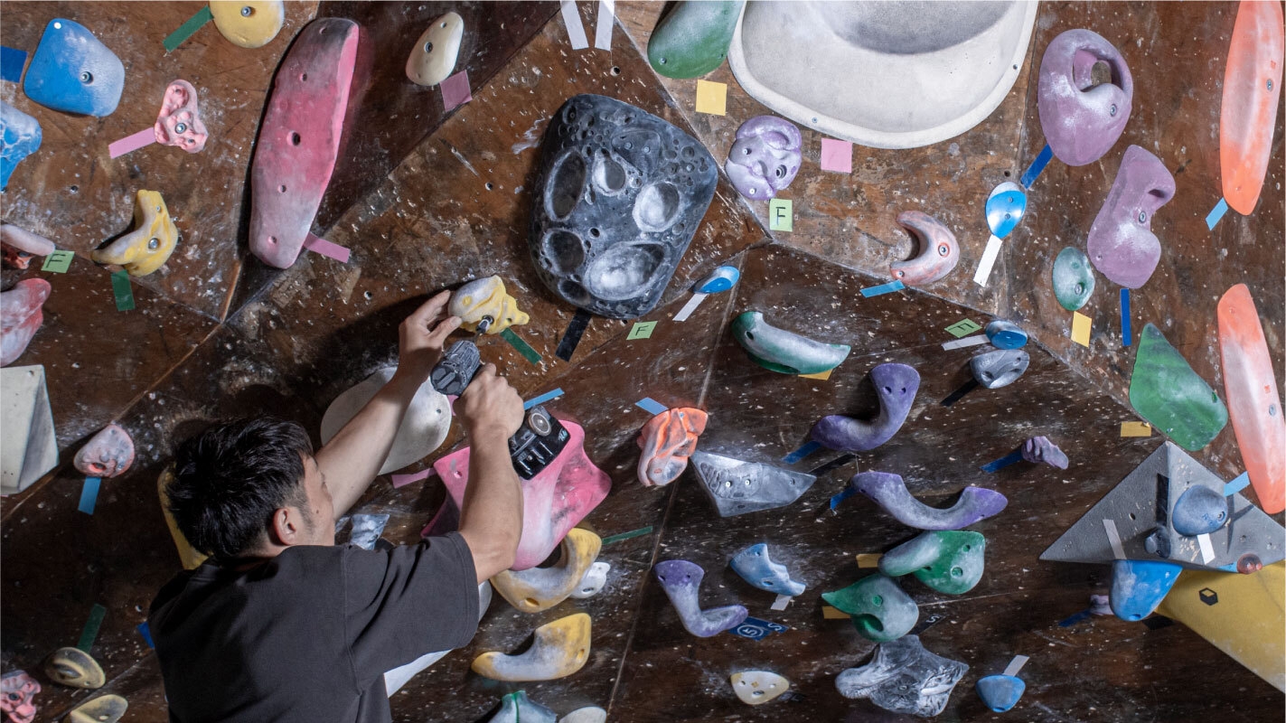クライミングジムでは、顧客であるクライマーたちの満足度や技術向上のため、定期的にホールドの位置を変更します。一度に百個単位のホールドを取り付け・取り外すこともあります。