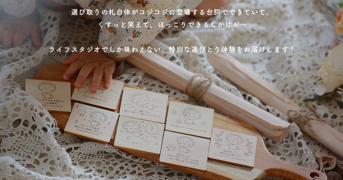 選び取り札には『コジコジ』に登場する台詞が書かれており、くすっと、そしてほっこりできるようになっています。ライフスタジオでしか味わえない、特別な選び取り体験をお楽しみください。
