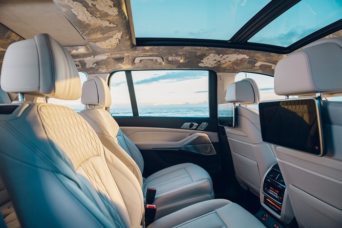 BMW X7独自の優雅で明るい室内に、日本が世界に誇る西陣織の色彩芸術が至高のラグジュアリー空間を演出