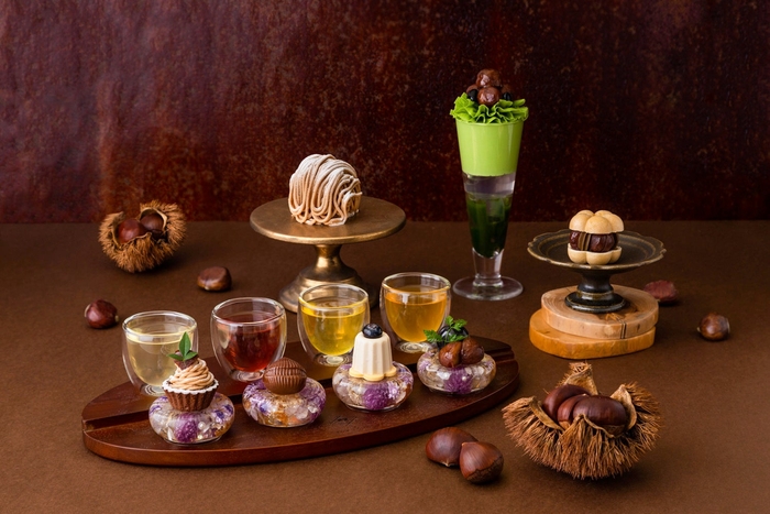 宇治茶の老舗「福寿園」がプロデュースするカフェ「茶寮FUKUCHA」(京都駅店、四条店)にて、10/1(土)~来年1/15(日)の期間、『2022 マロンと宇治茶。』フェアとして、人気のペアリングセットのマロンバージョンや抹茶マロンパフェなどが登場します。
