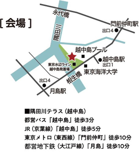 隅田川マルシェ(浅草花川戸)とすみだがわオープンテラス(越中島)をつなぐ特別便を運航します。