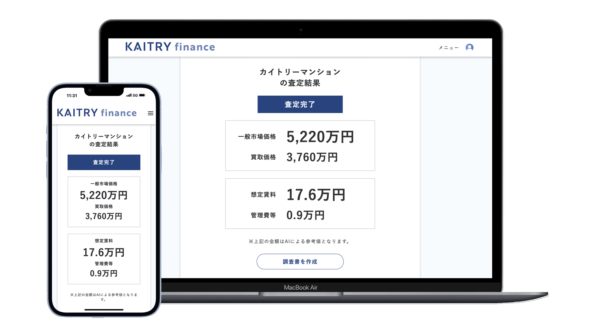 金融機関向けSaaS『KAITRY finance』「物件査定一括サービス」提供開始