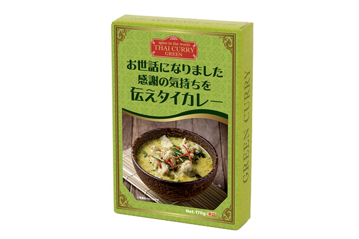 特別なメッセージではないけれど、ちょっぴりユニークなメッセージで、お世話になった方々に感謝の気持ちを伝えることができます。こだわりのスパイスや原材料を使った本格グリーンカレー: