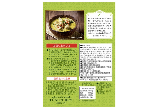 「メッセージカレー タイグリーンカレー『お世話になりました 感謝の気持ちを伝えタイカレー』」の特徴