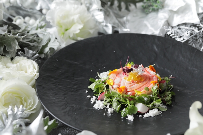 2022年を締めくくる鉄板焼シーズナルコースのテーマは“北海道”。海に囲まれ、広大な大地が広がる“大自然の宝庫”ならではの旬の食材を、愛知県産の新鮮な野菜と共にご堪能いただけます。シェフおすすめの一品は、冬の北海道をイメージした魚料理です。濃厚でコクがある北海道産雲丹を、皮をかりっと焼き上げた寒平目と、酸味を効かせた魚介出汁と白ワインのソースと共に楽しめます。メインは、肉質がとても柔らかく、深いコクとまろやかな味わいが特徴の「北海道産白老牛」をご用意。黒毛和牛種最上位ランクで、北海道洞爺湖サミットの昼食会にも使用された銘柄牛です。是非、特別なお相手や家族とのお食事、ビジネスのご会食など、様々なシーンでご利用くださいませ。
