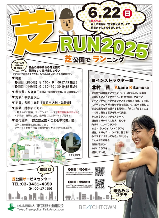 都立芝公園では6月22日(日)にランニングイベント「芝RUN2025」を開催します。インストラクターがランニング前のストレッチ、走り方を丁寧にレクチャーします。