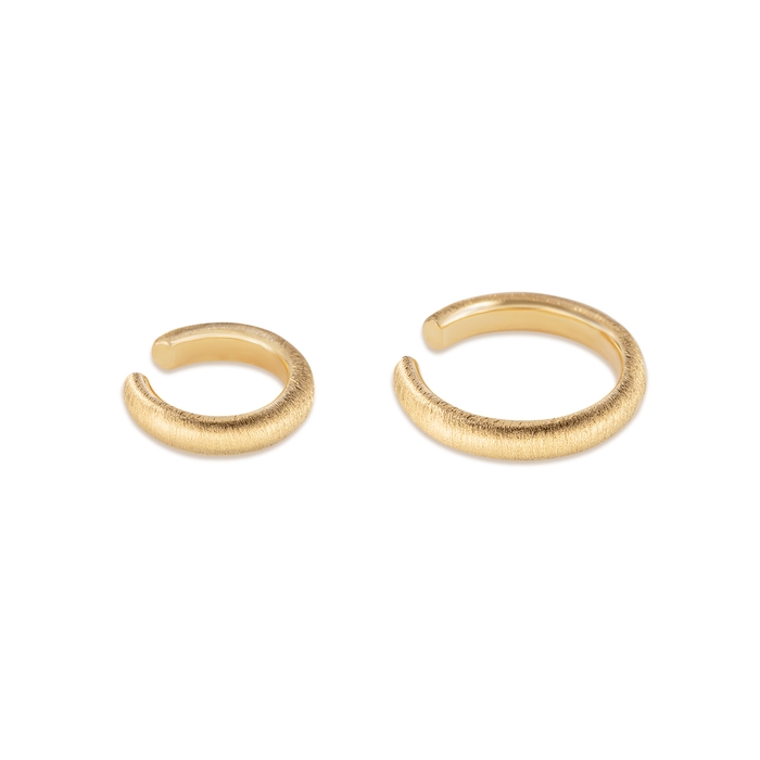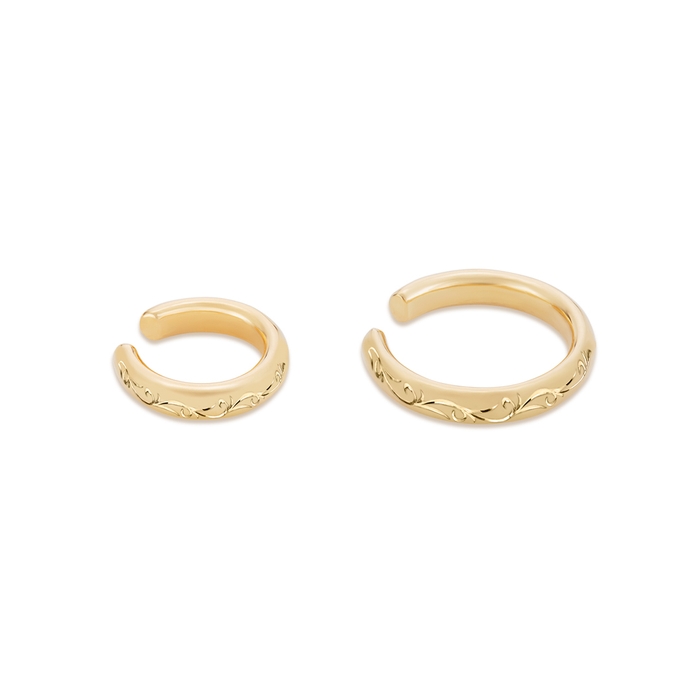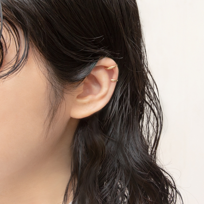 このほどの新作イヤーカフは、シンプルなフープデザイン2サイズと、ダブルラインの2種類(合計3型)です。そのままでも楽しめるほか、アレンジで刻印や彫り模様、宝石、チャームなどを追加することもできます。