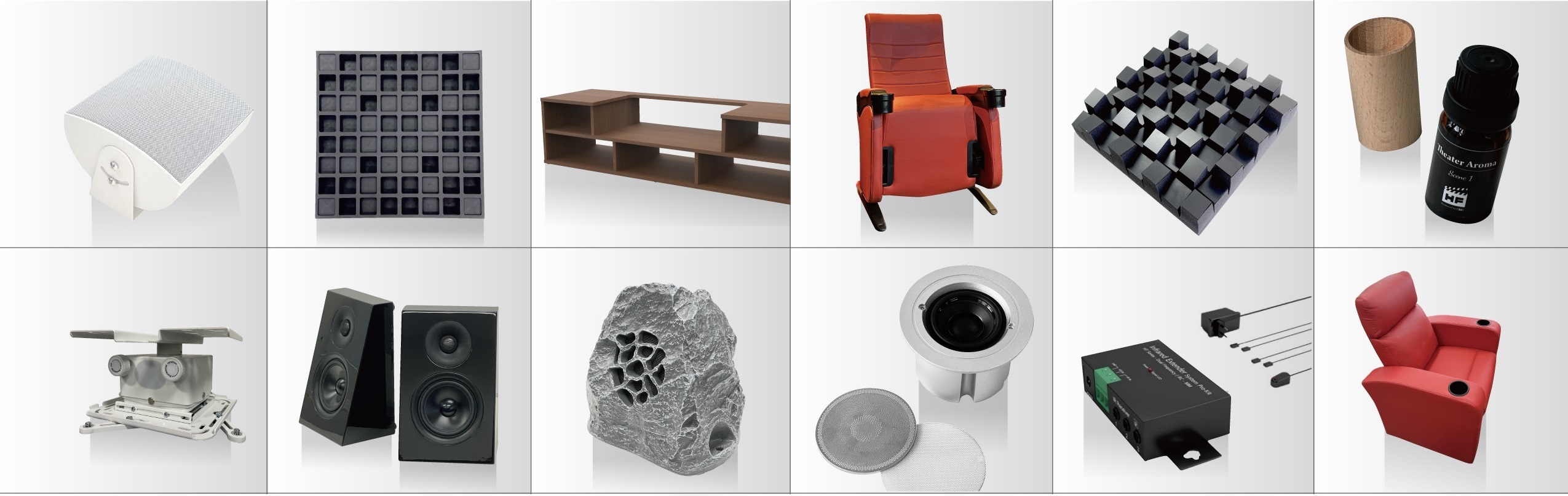 ホームシアターファクトリーでは、自社オリジナルによるホームシアター向け製品を多数開発しており、当ショールームでは実際の製品に触れる事ができます。
