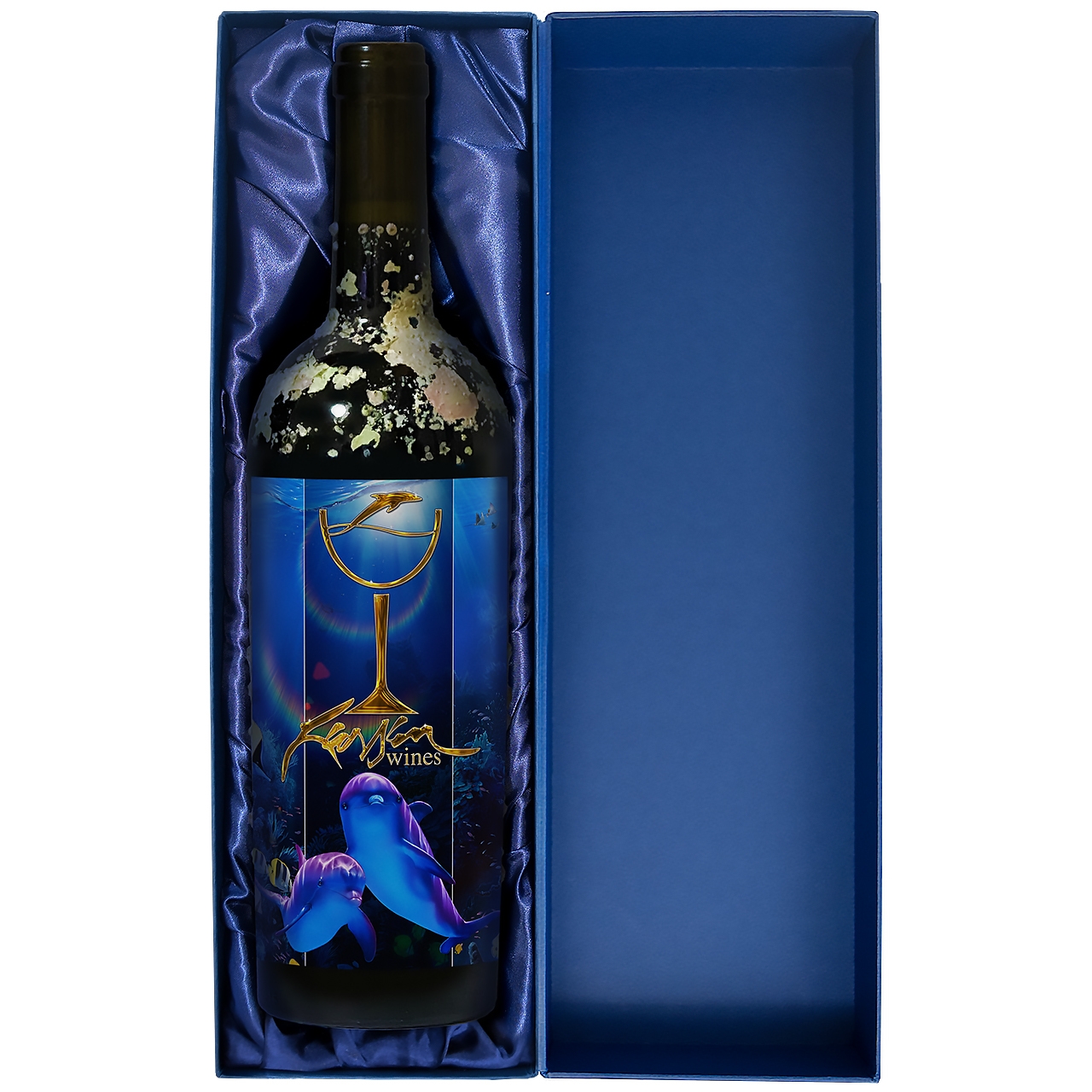 海底に貯蔵することで多くの生物が付着し、自然が生み出したビジュアルアートと西伊豆の海や風景を描いたクリスチャン・ラッセンのマリンアートをラベルにすることで、西伊豆の海中、景色を感じながら、海底熟成ラッセンワインをお楽しみいただけます。また、海底熟成ワインは、他に同じデザインが存在しない、唯一無二のギフトとしてもご好評いただいております。