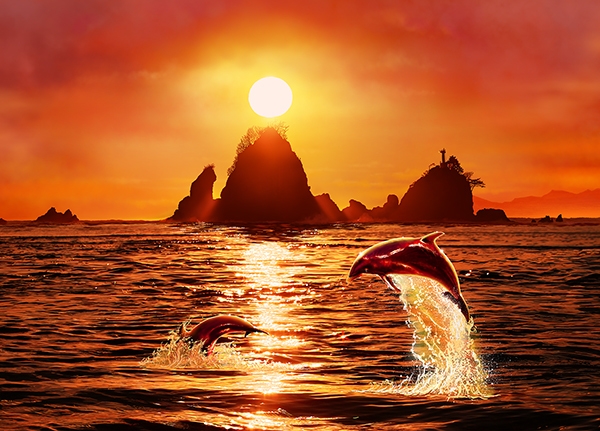クリスチャン・ラッセンは、海中風景やイルカなどの海洋生物を主なモチーフに、南洋の自然をきらびやかな画風で描き、「マリンアート」と称され、日本でも人気画家として知られています。