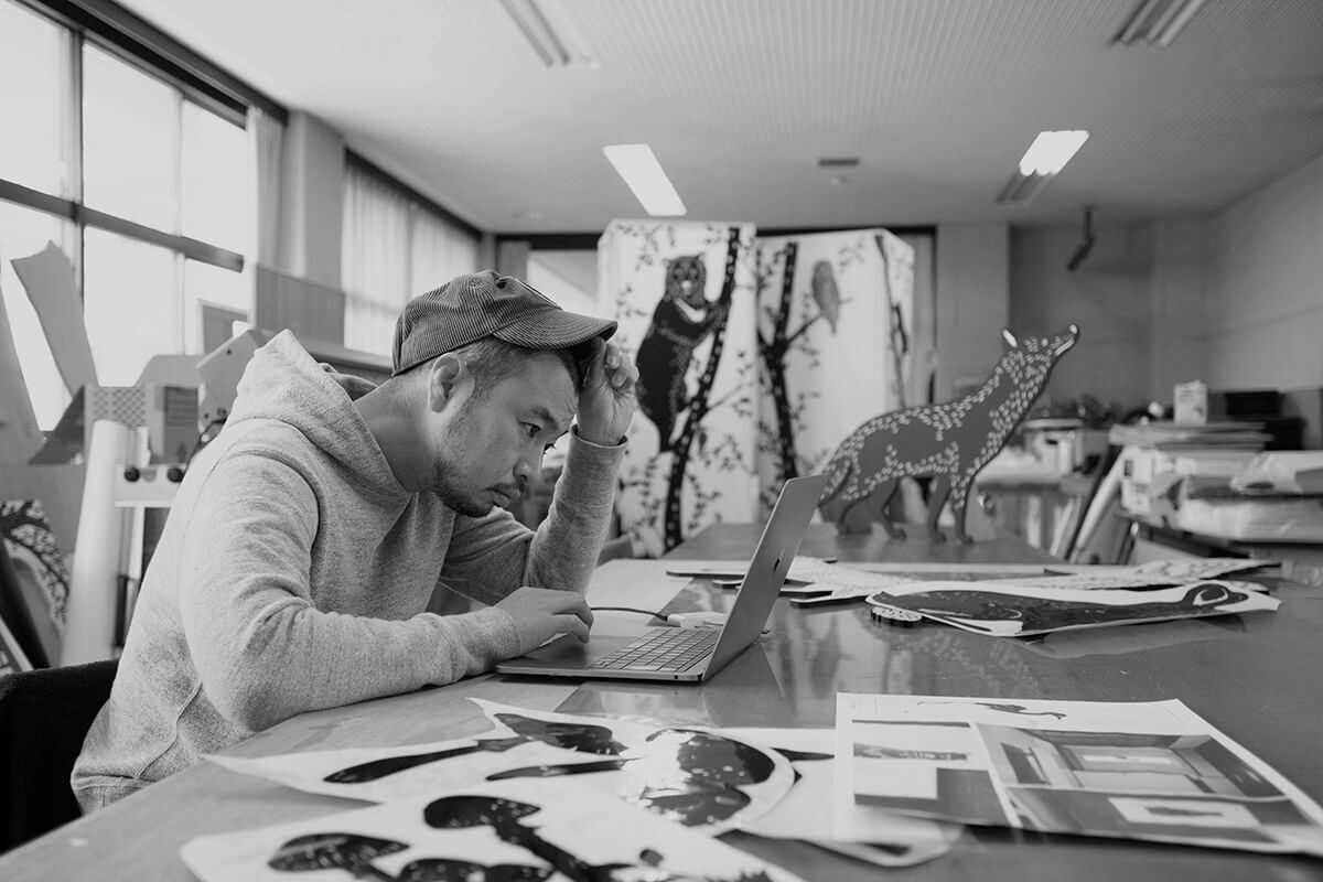 精密な切り絵作品にとどまらず、大掛かりなインスタレーションやライトアップを手がけるなど、新しい切り絵表現の可能性を模索している。