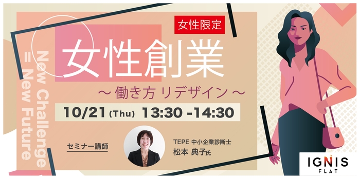 東京・水道橋のスタートアップ支援型インキュベーション施設『IGNIS』は、中小企業診断士の松本典子氏をお迎えし、「女性創業」をテーマにオンライントークイベントを開催します。