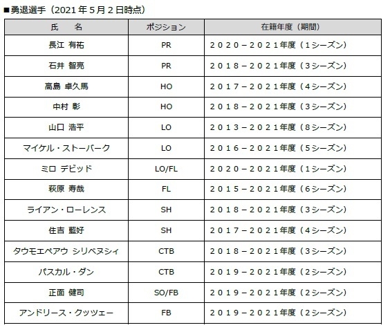 近鉄ライナーズ 2020-2021シーズン勇退選手・退団スタッフについて2021-05-02 16:00近鉄グループホールディングス株式会社 近鉄ライナーズの2020-2021シーズン勇退選手・退団スタッフについて、下記のとおりお知らせします。勇退選手一覧以上退団スタッフ一覧画像・ファイル一覧一括ダウンロード勇退選手一覧退団スタッフ一覧