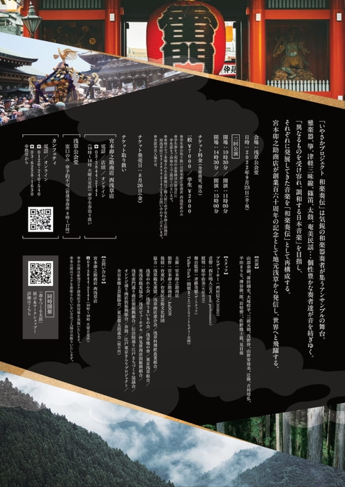 株式会社宮本卯之助商店(代表:宮本芳彦)主催、『宮本卯之助商店百六十周年記念 いやさかプロジェクト 和楽奏伝』が2022年9月23日(金・祝)に台東区立浅草公会堂(東京都台東区浅草1-38-6)にて上演されます。