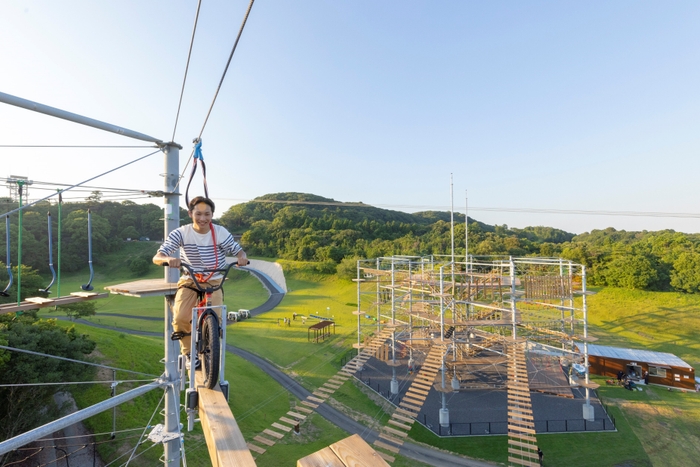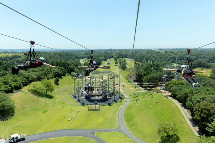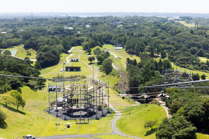 うつ伏せスタイルで滑空するジップラインとして日本最長 約620メートルを誇る「ジップダイブ」、大小2棟連結型で127種類のコンテンツを備えた「クライミングタワー」、赤外線システムを使用した屋外型サバイバルゲーム「レーザーバトル」のほか、豊かな自然の木々を活かし、小さなお子さまも安心して遊べる「ハーモニーハウス」や「フォレストジャンプ」など、全20種類のコンテンツが楽しめます。
