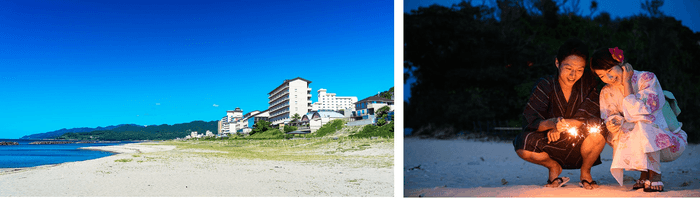 昼は海水浴、夜は花火。これ以上ない夏らしい一日を過ごせる宿はファミリーはもちろん、カップルやお友達同士の旅にもお薦めです。
