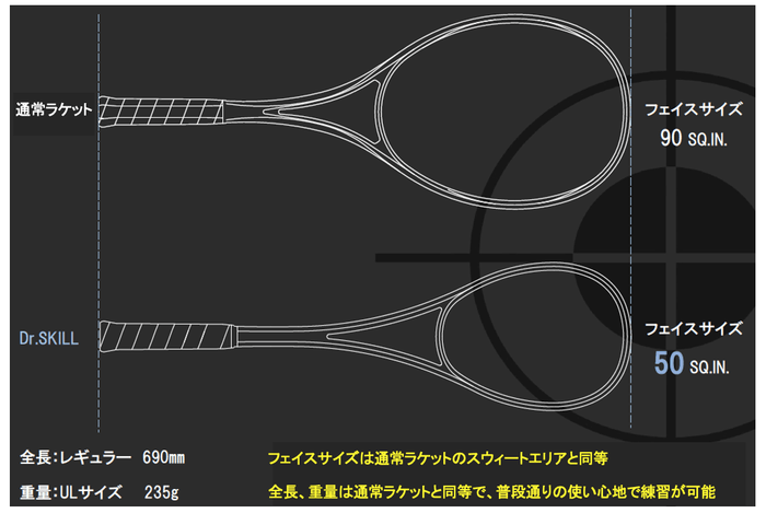 少ない練習時間でも、ボールを捉える正確性と、ショットのコントロール性を効率的に向上させる新規格のトレーニングラケットをご提案いたします。