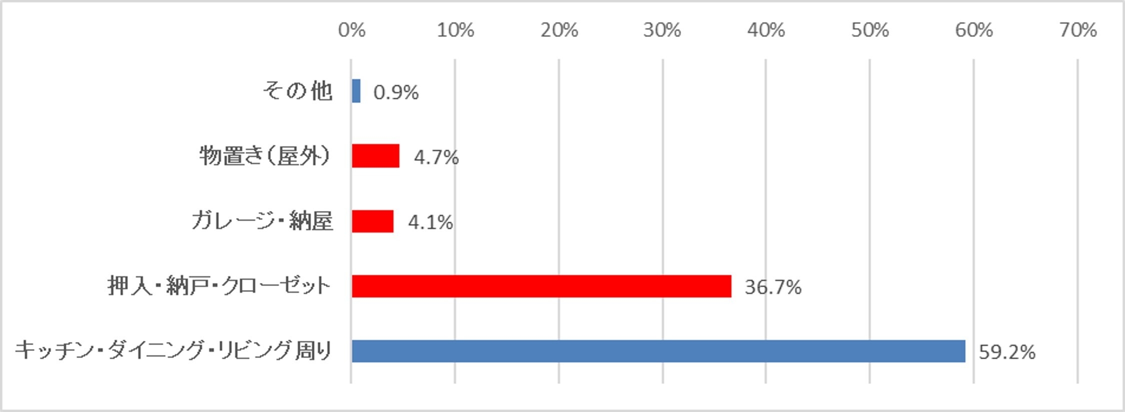 (3) カセットボンベの保管場所では、押入、物置(屋外)、ガレージ・納屋など存在を忘れがちになりやすい場所に保管されているケースがある。