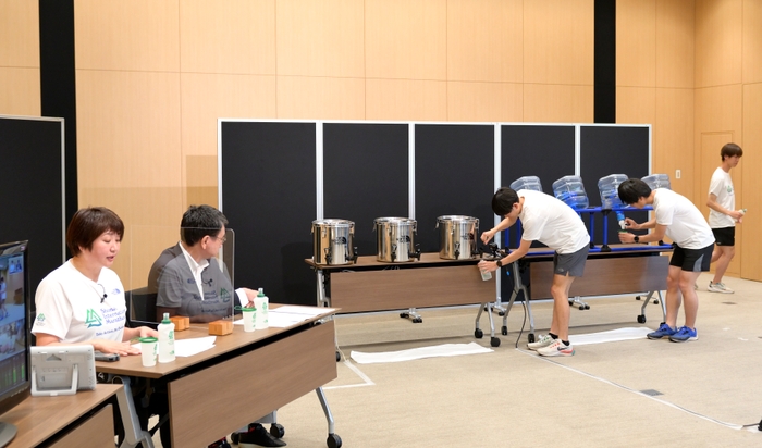 イベントライブが始まると、最初に河野太郎会⻑は「マラソンを愛する方々にとって、ステイホームの時期に、マラソンの練習をするのも大変だったと思います。それ以上に、運営側やランナーのみなさんも中止が続きガッカリされることも多かったでしょう。ですが、いつまでもコロナに負けるわけにはいきません。コロナ後の日本社会を新しく作っていくためのきっかけとして、多くのランナーの方々に参加していただいて、素晴らしい大会にしたいと思います」と述べた。このイベントの立ち上げ当初から参画している河野会長だが、ここまでの歴史を振り返り、「全国各地で市民マラソン大会が行われ、かねてより湘南でもマラソン大会を催したいと思っていました。色々な困難を経て開催してみると、北海道や九州といった遠くから来てくださったランナーの方々が『富士山が見えるすごいコースだ』と感心されているのを聞き、この湘南のコースの価値に気づかされましたし、ランナーやボランティアのみなさんに支えられて続いてきた大会だと改めて思っています」と述べた。その後、新しい給水方法のデモンストレーションが実施され、スタッフとランナーとの軽妙なやりとりから、スムーズに給水ができることを実践してみせた。その様子を見た河野会長は「プラスティックのゴミを出さない大会は、SDGsを推進させる上でも画期的です。今後のマラソン大会の未来が見えるようでワクワクしますね」と語った。