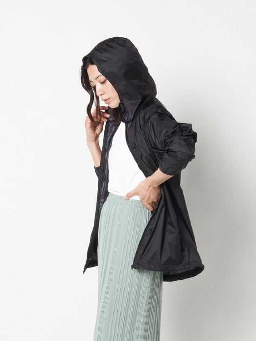 今回、プロジェクト「MOONRAKERS」は、「エコディア®N510」素材の特性を生かし、なめらかでさらさらとした風合いの快適な着心地、簡易なウインドブレーカー/レインウェアとして利用可能な高い防風・撥水機能、コンパクト収納で簡易に持ち運びできる利便性を実現したパッカブルパーカーを開発しました。