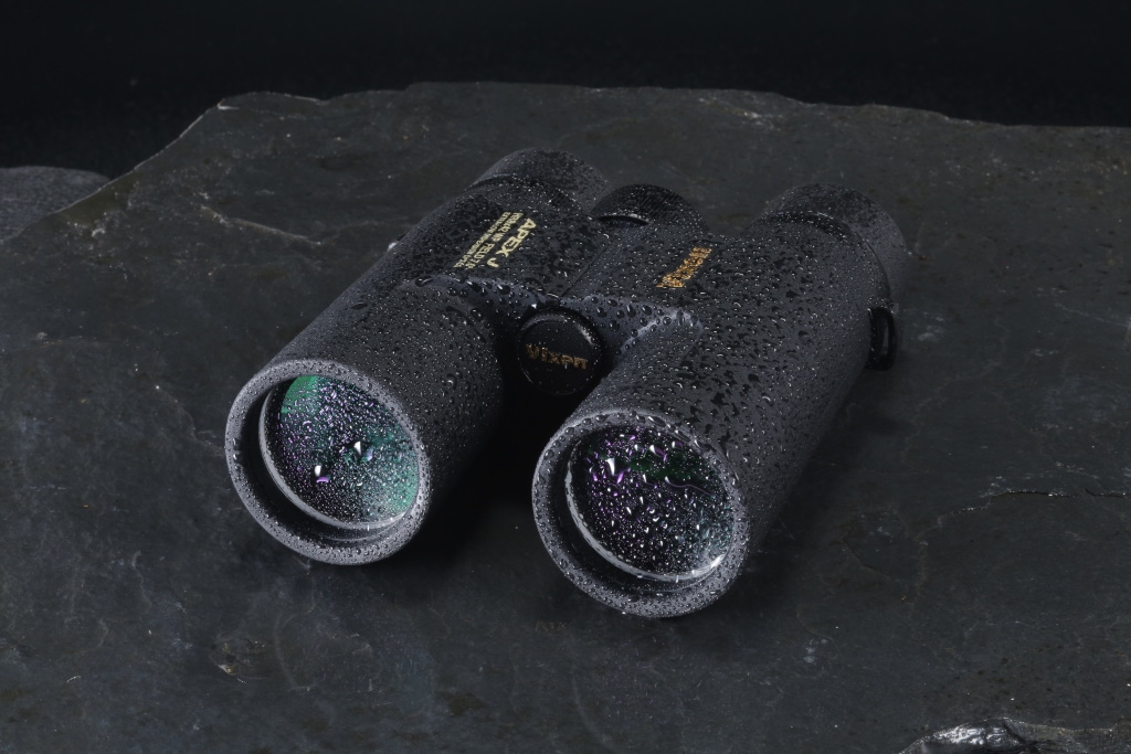APEX J HR8×42WPは、光の反射や散乱を高いレベルで低減するため、対物および接眼のレンズ全面に反射防止コート(フーリーマルチコート)、プリズムには光の散乱を抑制するコート2種類(フェイズコート、高反射コート)を施しています。これらのコーティングにより、双眼鏡のレンズ面および内部での光の反射や散乱を高いレベルで抑えることで、極めてクリアかつ高解像度な視界を追求しました。