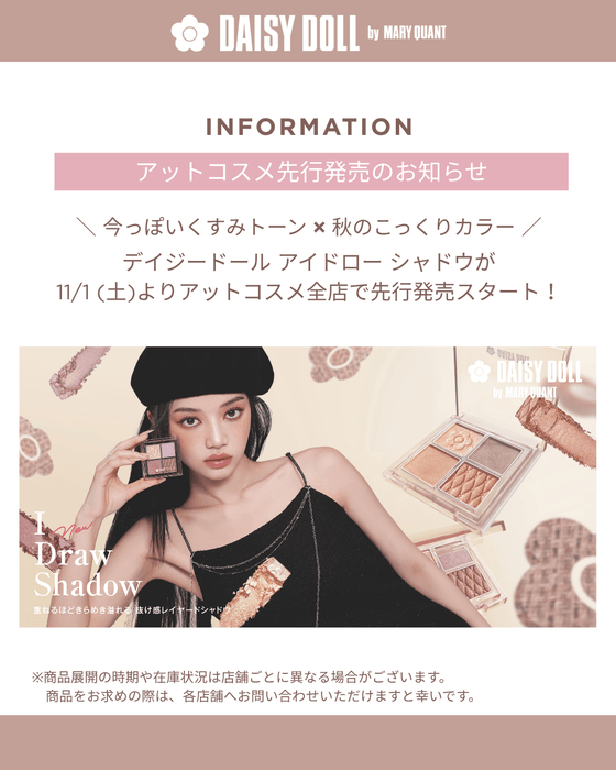 この秋注目の新色がいち早く手に入る!「デイジードール アイ ドロー シャドウ」11月1日よりアットコスメ先行発売スタート! | NEWSCAST