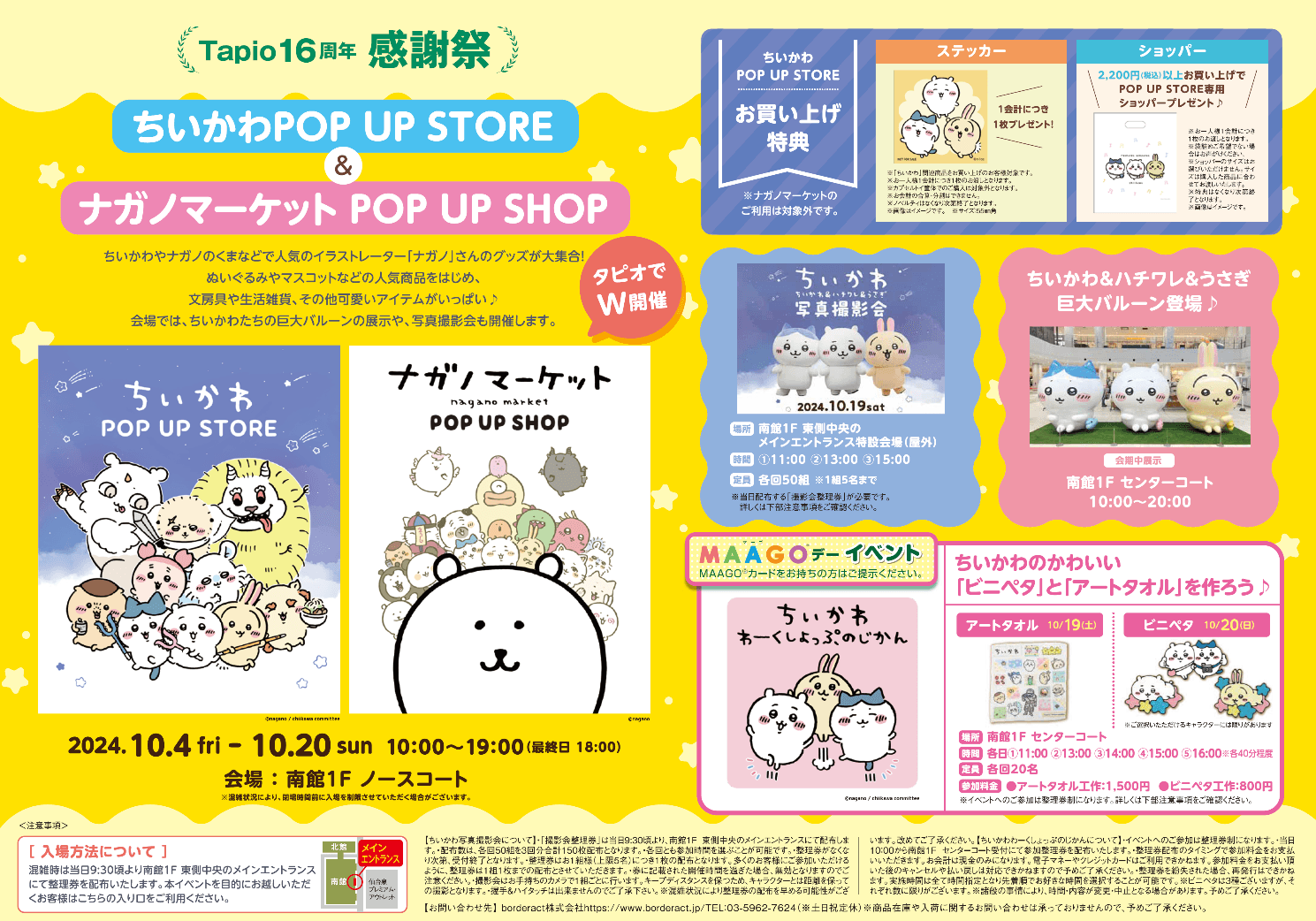 『ちいかわ POP UP STORE』『ナガノマーケット POP UP SHOP』他 盛りだくさん!