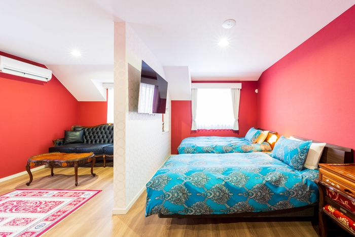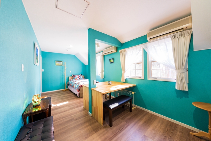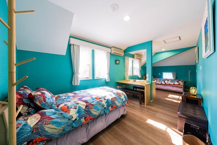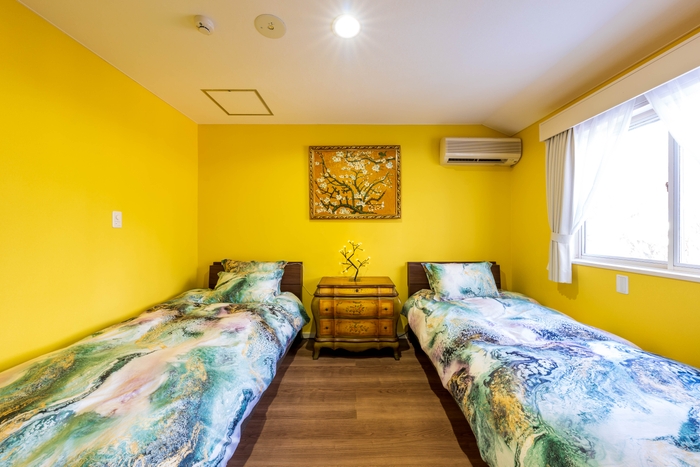 6室ある寝室は色彩鮮やかに異なったイメージでデザイン。最大で11名様までご利用可能。