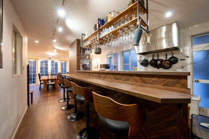 広々としたダイニングスペース、キッチン横にはおしゃれなバーカウンターも。