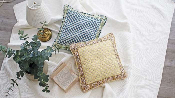 プロヴァンスの伝統柄をモダンに再解釈した美しいプリントファブリックが、リビングやベッドルームに軽やかな表情を添えます。