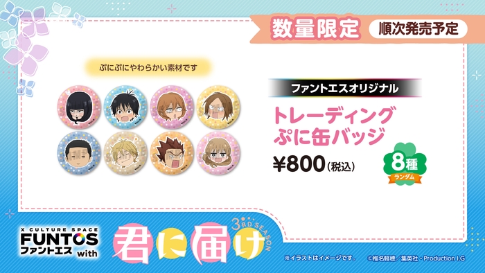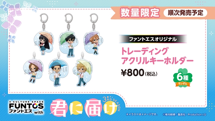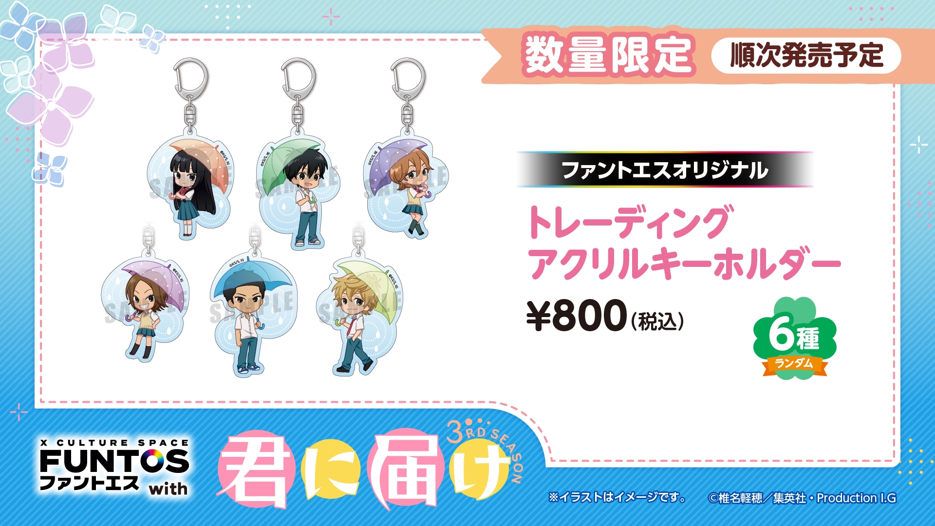コラボ特別イラストグッズのほか、アニメイラストを使用したフォンタブや前髪クリップも登場!『ファントエス with 君に届け 3RD SEASON』は全国のファントエスにて開催!