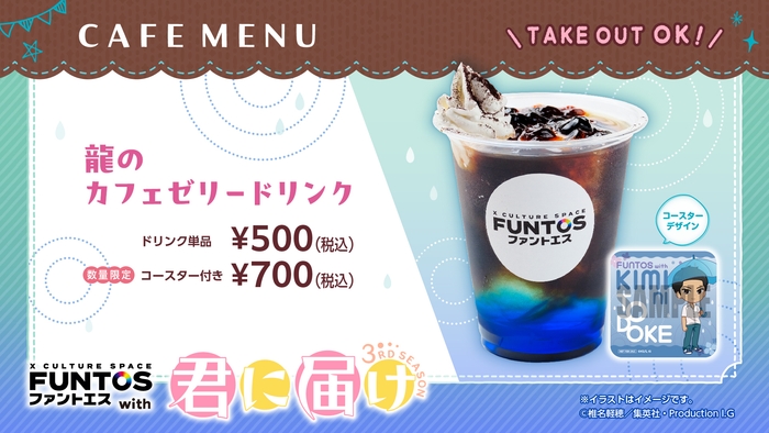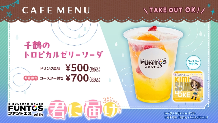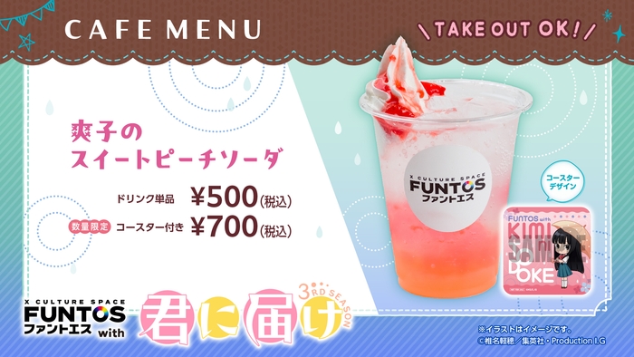 また、カフェ併設店舗では爽子達をイメージしたコラボドリンクなどを販売予定です。