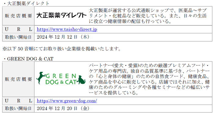 発売時においては、わんビオフェルミンS・にゃんビオフェルミンSは下記販売店様でお買い求めいただけます。