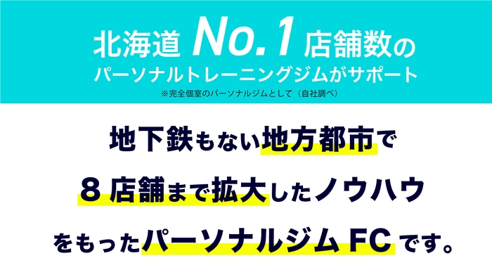 北海道4都市で8店舗展開するパーソナルジムが地方都市での実績をもとにフランチャイズ1次募集を開始します。