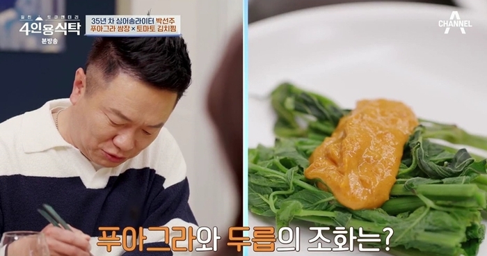 歌手のパク・ソンジュは、韓国のチャンネルAで放送されるバラエティ番組「親友ドキュメンタリー - 4人用食卓」でフォアグラサムジャンとトマトキムチ蒸しという異色の料理を披露し、その中でも特にフォアグラサムジャンに対して出演者は熱い反応を示しました。