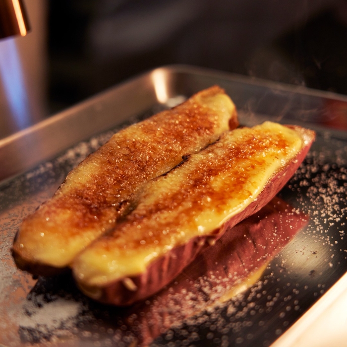 ほくほくとした美味しい焼き芋にカスタード、厳選よつ葉乳業の北海道十勝産ソフトクリームをトッピングした贅沢なスイーツです。さつまいもの自然な甘みと、ブリュレの表面が絶妙にマッチして、口の中でふわっと広がる美味しさをお楽しみいただけます。是非、食べたことのない方も、さつまいも好きの方も、一度はご賞味いただきたい逸品です。