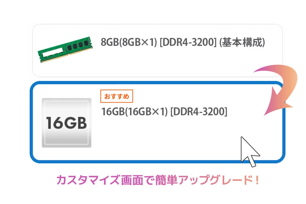 【BTO標準構成】各種カスタマイズが可能な「BTO(Build to Order=受注後生産方式)」に対応しています。