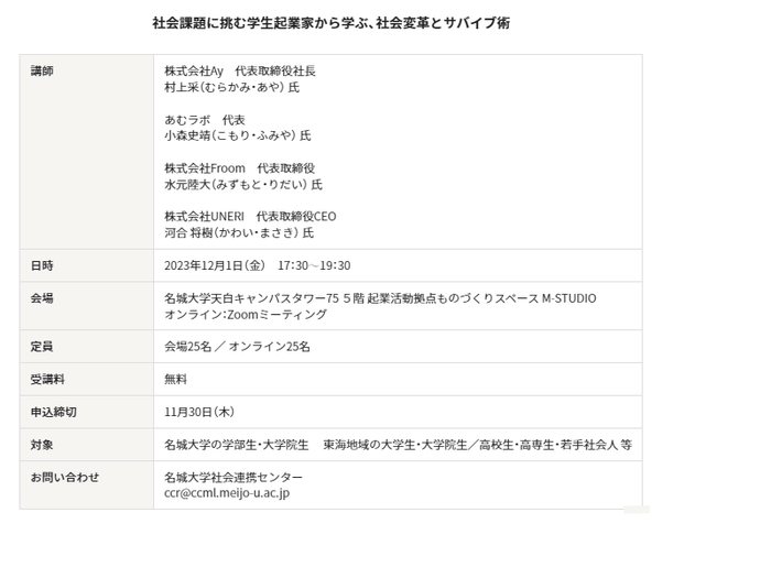 【名城大学】社会課題に挑む学生起業家から学ぶ、社会変革とサバイブ術「DONUTS(ドーナツ)」