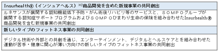 両社グループの強み・ノウハウを活かした現行サービスの進化に加え、中長期的には、データ・エビデンスに基づく認知機能低下予防・生活習慣病等の予防・身体機能改善事業を創出し、企業・健康保険組合・地方自治体等の関係機関とも連携しながら広く展開していくことを目指します。