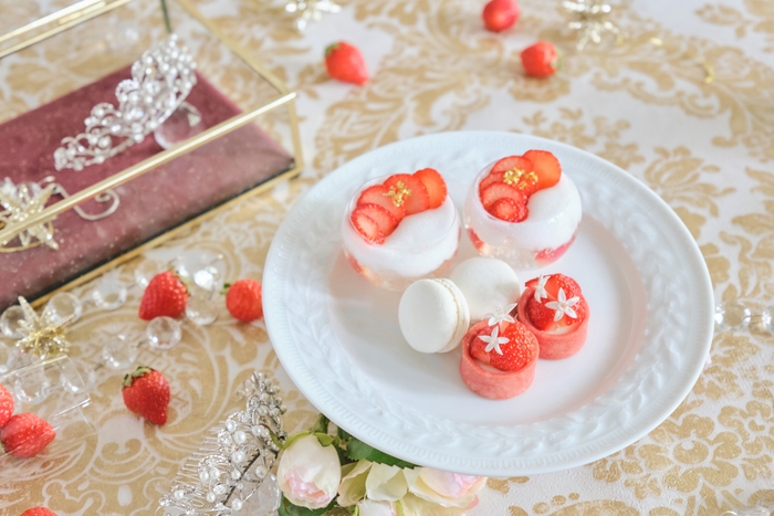 いちごづくしの“ご褒美パフェ”に、キュートなプリンセスドレスケーキ、そしてホワイト×ゴールドカラーをベースに、いちごの赤が映える三段ティースタンドのスイーツとセイボリーがセットになった、豪華なストロベリー・アフタヌーンティーを限定販売いたします。