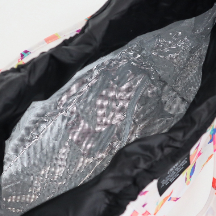 中生地にアルミニウムを使用した保冷効果もバッチリのクーラーバッグ。お買い物時のエコバッグとしても使用しやすく、自転車の前カゴに収まるサイズ感です。