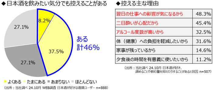 近年、アルコール度数の高さを理由に、日本酒を飲みたい気分でも飲用を控えるユーザーが約半数を占めています(当社調べ)※1。今回新発売する“「松竹梅」<金色の9%>”は、飲み控え経験のある日本酒が好きな方々に、もっと気軽に日本酒を楽しんでいただくために開発した新商品です。
