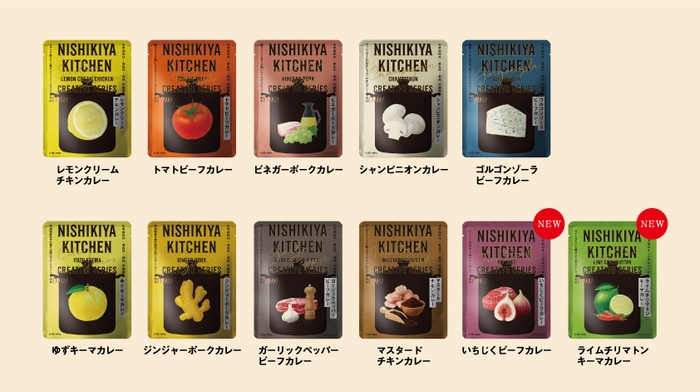 NISHIKIYA KITCHEN(ニシキヤキッチン)(株式会社にしき食品、本社:宮城県岩沼市、代表取締役:菊池 洋)は、人気No.1の「クリエイティブシリーズ」より、「いちじくビーフカレー」と「ライムチリマトンキーマカレー」の2品を2023年6月22日(木)に発売します。「いちじくビーフカレー」は「ドライいちじくと生ハムの盛り合わせ」から発想し、「いちじく」の甘酸っぱさを生かしたカレーです。「ライムチリマトンキーマカレー」はレモン、ゆずに続く柑橘のカレーで、「ライム」の爽やかさを生かしています。お酒のおつまみから発想した「いちじくビーフカレー」と爽やかな「ライムチリマトンキーマカレー」は、夏にもぴったりな味わい。ニシキヤキッチンの「クリエイティブシリーズ」はこれまで9種類のラインナップがあり、今回で全11種類となります。