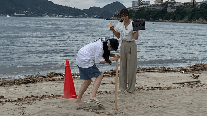 ご当地・愛媛朝日テレビから川上夏子アナが参戦し、正しいスイカ割りを教えてもらいます。
